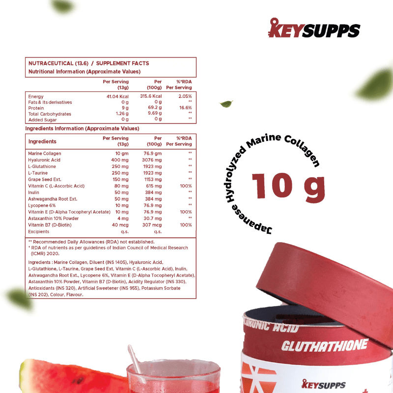 KeySupps’ Collagen Gold Plus is a premium quality supplement that supports healthy skin, hair, and nails. It is made with high-quality collagen peptides derived from marine sources, known for their superior amino acid profile. Collagen improves skin elasticity, reduces fine lines and wrinkles, and promotes hair and nail growth. The collagen peptides are easily absorbed by the body and support healthy joints and bones. KeySupps’ Collagen Gold Plus comes in three flavours: Mango, Orange and Watermelon, and it can be easily mixed into any beverage or smoothie, making it a convenient addition to any daily routine.